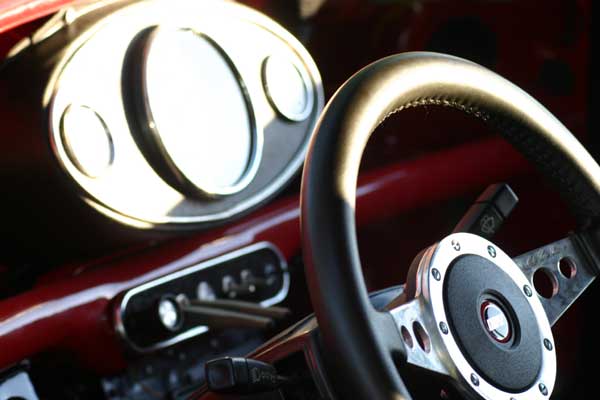 MotoLita-Lederlenkrad, selbstgebautes Shiftlight, Schwanenhals-Leselampe, gekürzte